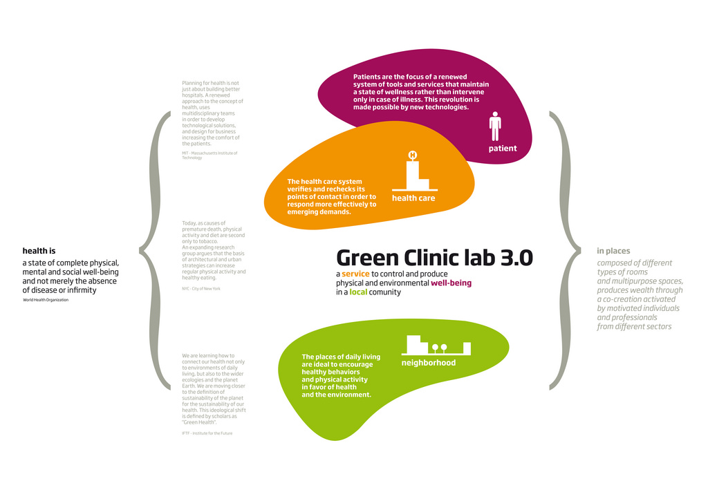 Green ClinicThe goal is to rethink of tools and health services under a renewed system of requirements and proximity to environmental health issues. The Green Clinic is a service that answers to a wider definition of health modeled on specific needs of a neighborhood. A service that uses technology, but it can also be seen as a concrete point of contact where motivated individuals and professionals from different sectors (not only the medical one) can work together to make places and lifestyles healthy. Green Clinic rethinks of medical practice through the interdisciplinary activity, where, information, lifestyle and cities are the workplaces. by: Lorenza | Aug 24, 2010